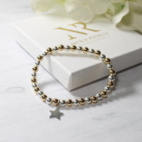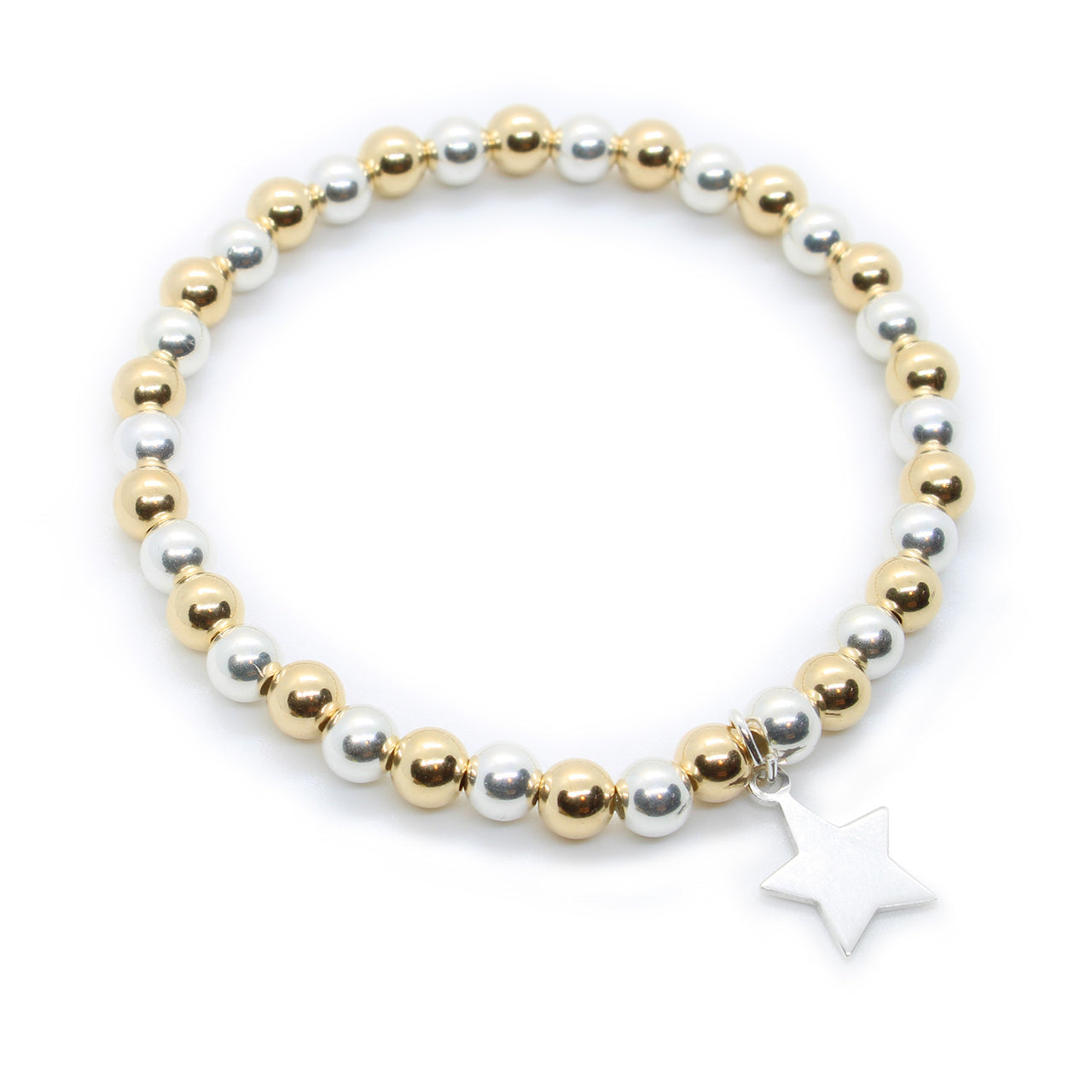 This star bracelet is handmade using 5mm sterling silver and gold filled beads with 1cm star charm.