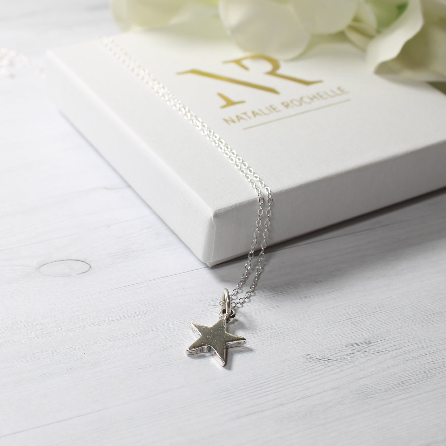 This gorgeous classic star necklace made in solid sterling silver is 1cm. The chain is a 1.3mm chase chain and also made from sterling silver and you can choose your preferred chain length.