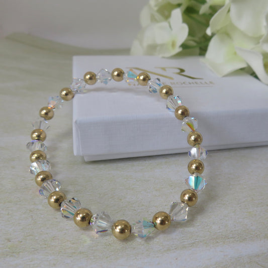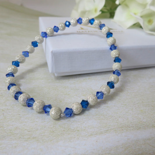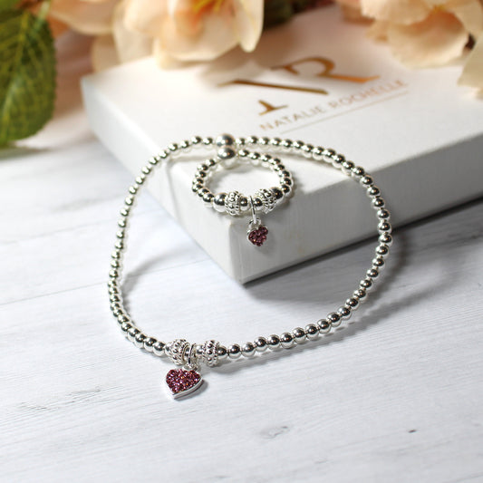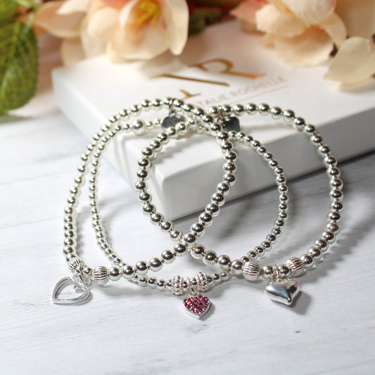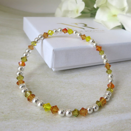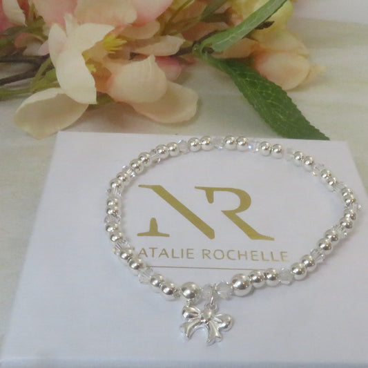 Sterling Silver Bow Charm Bracelet - UK Handmade Crystal Beads