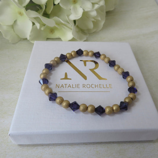 Gold Sparkle and Purple Crystal beaded Bracelet