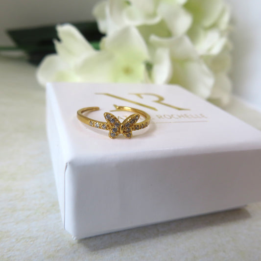 Dainty Gold Plated Butterfly Toe Ring | 925 Silver & CZ