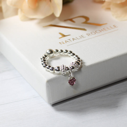 Delicate Pink Heart Stretch Sterling Silver Ring