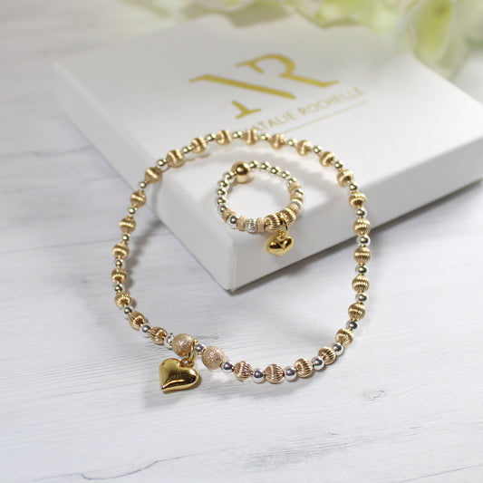 Gold and Sterling Silver Stacking Bracelet and Ring Set
