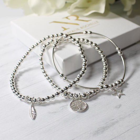 Classic Stretch Sterling Silver Stacking Bracelet and Ring Set